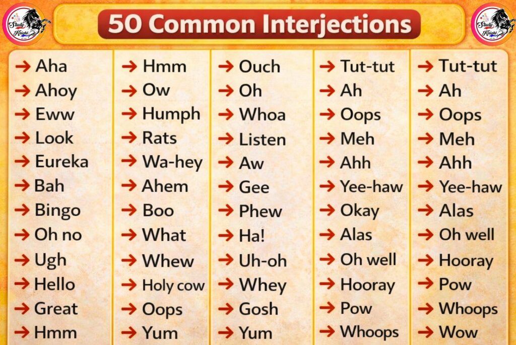 Easy and Important Interjections in English Grammar with Examples