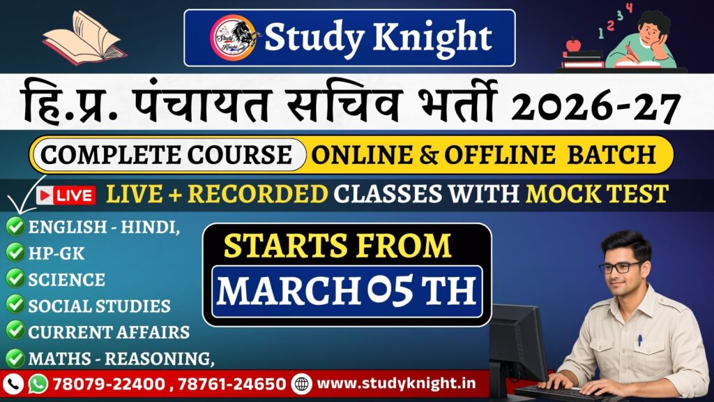 अगर आप पंचायत सचिव या अन्य सरकारी परीक्षाओं की तैयारी करना चाहते हैं तो Study Knight से जुड़ सकते हैं।